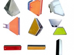 轮廓标是一种视线诱导设施。根据其设置条件不同可分为独立式轮廓标和附着式轮廓标两类。当路边无构造物时,轮廓标为柱式,由柱体、逆反射体组成,独立设置于路边土路肩中,其主体结构为三角形断面立柱;当路边有构造物时,轮廓标为附着式,由逆反射体、支架和连接件组成。根据构造物的不同,轮廓标可分别附着于波形梁护栏、混凝土护栏、隧道侧墙和缆索护栏之上。