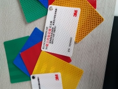 由反光层、底膜、压敏胶及离型层构成,主要色彩有白色、红色、蓝色、黄色、绿色、橙色、荧光黄、棕色等十余种色彩及其亮绿、间紫、淡紫、荧光黄等其它特殊颜色。